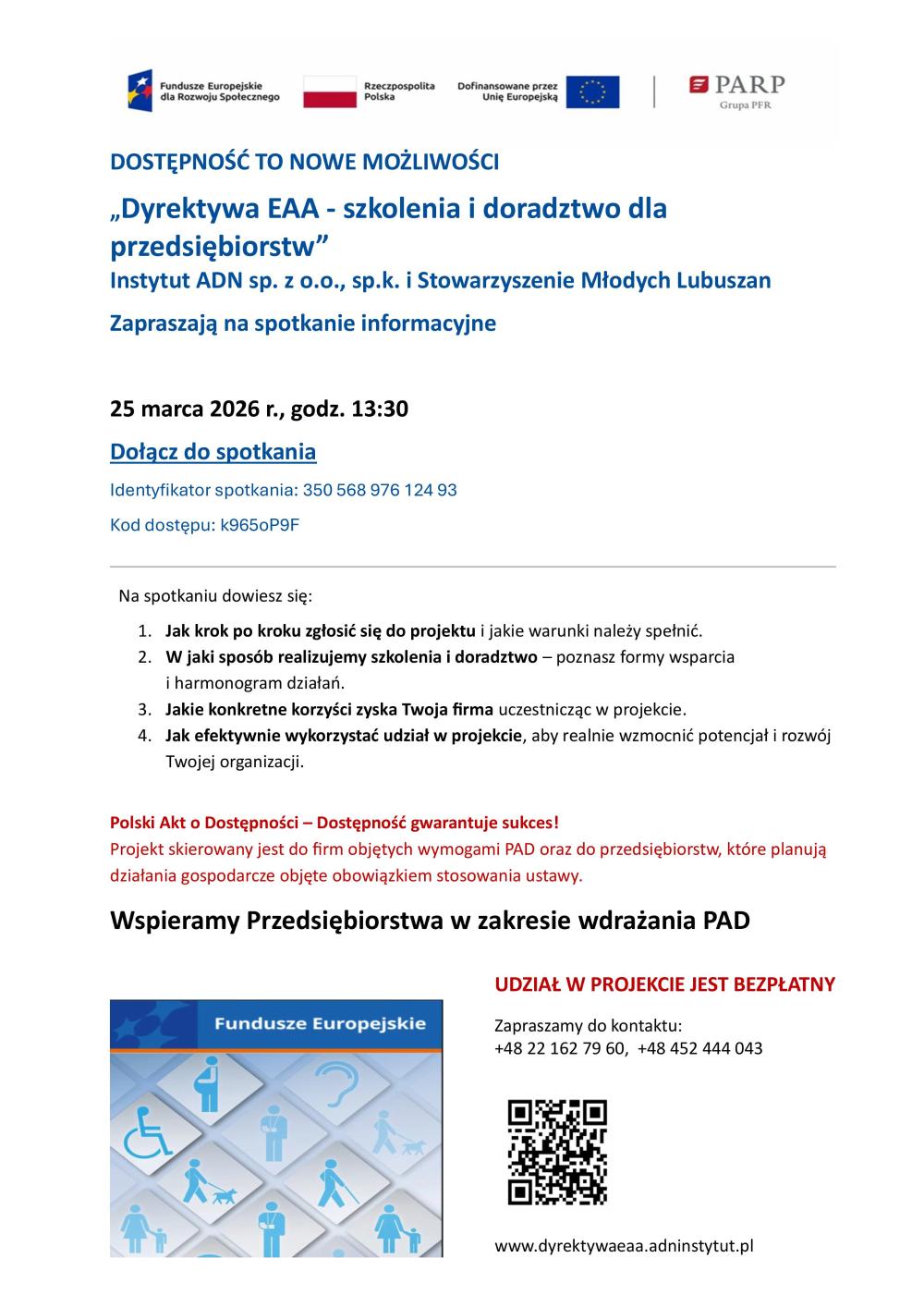 Informujemy o możliwości udziału w projekcie „Dyrektywa EAA – szkolenia i doradztwo dla przedsiębiorstw”.